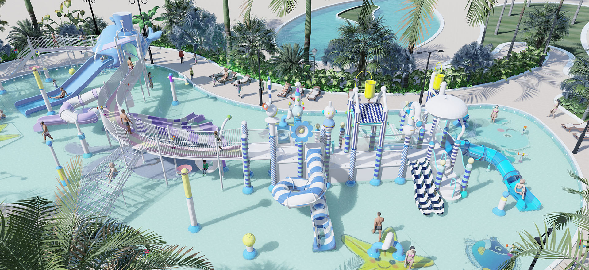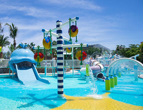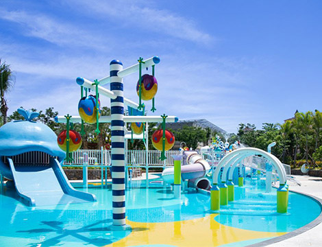項(xiàng)目簡介:酒店位于海南陵水,坐擁“會(huì)唱歌的沙灘”清水灣,親子水上樂園2022年6月開業(yè),以“深海”為靈感設(shè)計(jì),以藍(lán)色為主色調(diào),設(shè)備上推陳出新,利用滑梯出口設(shè)計(jì)生動(dòng)形象的鯨魚雕塑,以及海洋主題鋪裝打造海洋氛圍,配備豐富多彩的海島娛樂項(xiàng)目,是舒暢身心及活力運(yùn)動(dòng)的結(jié)合,創(chuàng)造多層次的海洋體驗(yàn)。