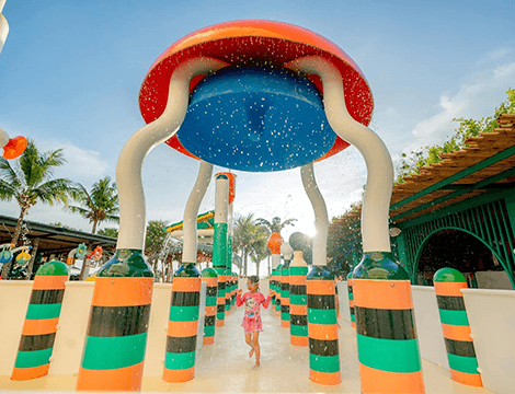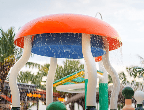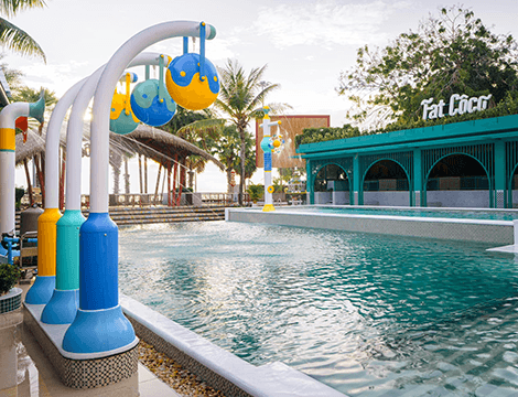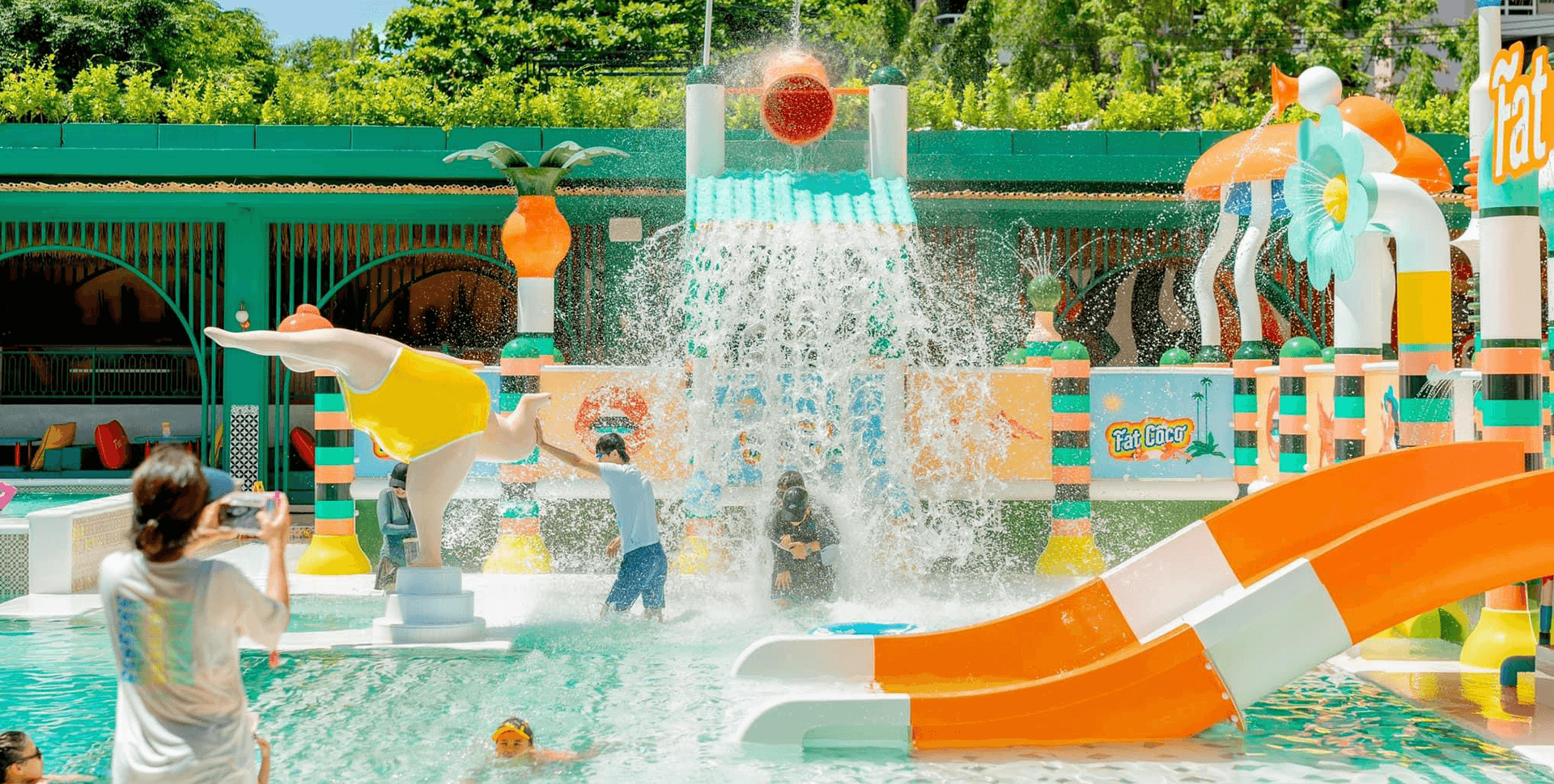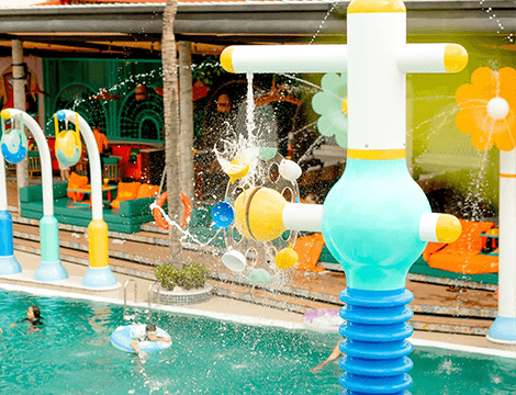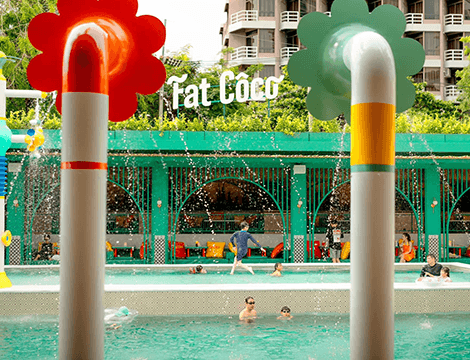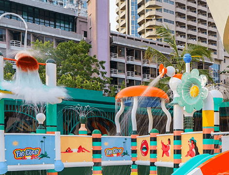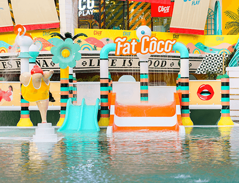 項(xiàng)目簡(jiǎn)介:FAT COCO水上樂園位于泰國(guó)芭提雅A-one The Royal Cruise Hotel酒店,占地面積470平。水上樂園結(jié)合酒店度假風(fēng)格,以酒店IP“FAT COCO”形象,設(shè)計(jì)了一款自然美學(xué)與互動(dòng)樂趣相融合的水上游樂設(shè)施。流暢的線條和鮮艷的主題色調(diào),融入“FAT COCO”的IP元素,太陽花戲水、彎曲趣味倒水桶、彎曲小丑噴水等十幾種戲水小品設(shè)施,打造適合休閑放松、親子互動(dòng)的繽紛水寨和淺水戲水區(qū),滿足全齡段游客對(duì)水上游樂的期待。