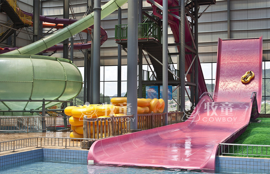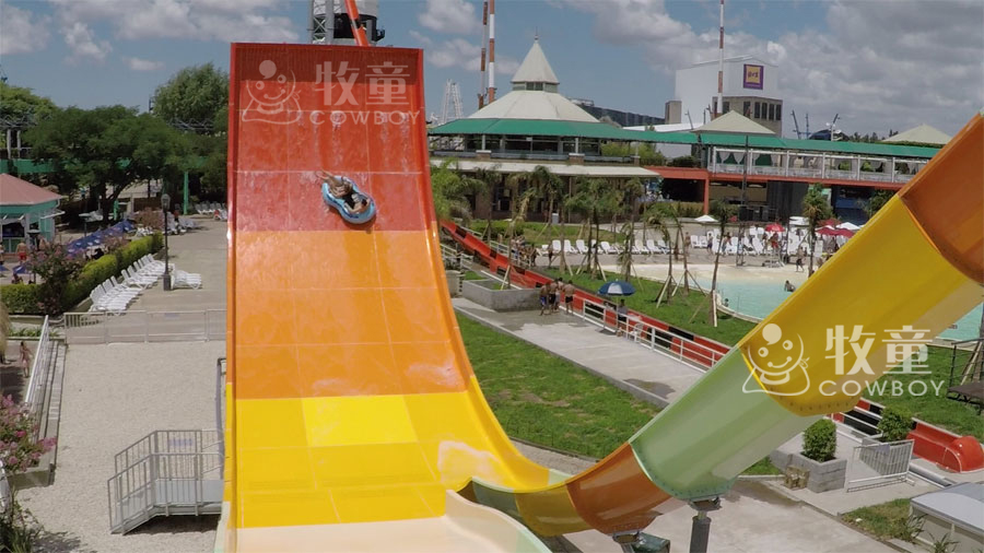 沖天回旋滑梯的形狀就是一個巨大的滑道加上一個巨大的U型滑板。2人一組坐到皮筏上,從設備的最高處快速滑到最底部,然后借著巨大的慣性,繼續(xù)向上滑行到幾乎呈90度上揚角度的滑道上,然后再從幾乎垂直的滑道上借著地心引力自由滑落到平緩的地段。徹底地體驗沖天回旋的快感帶來的合家歡樂,是水上樂園最受歡迎的設施之一。