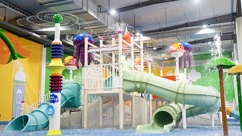 順著滑梯滑落,又置身于戲水小品的繽紛世界,面對明艷歡快的色彩,生動有趣的卡通形象,孩童的天性得到完全的釋放,就連陪同家長的童心也被喚醒,一同沉浸在水花噴灑的童話世界中,享受溫馨的親子世界。