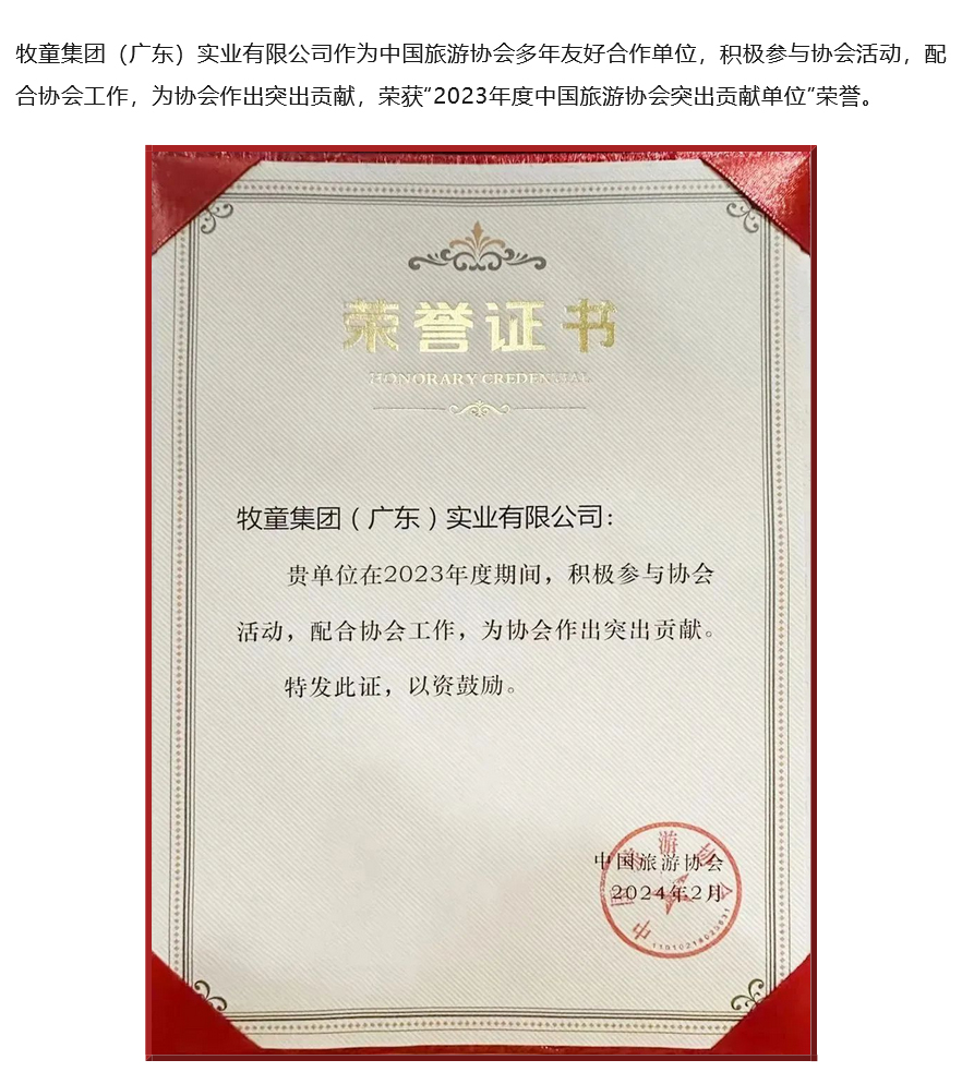 牧童喜報丨牧童榮獲2023年中國旅游協(xié)會“突出貢獻單位”